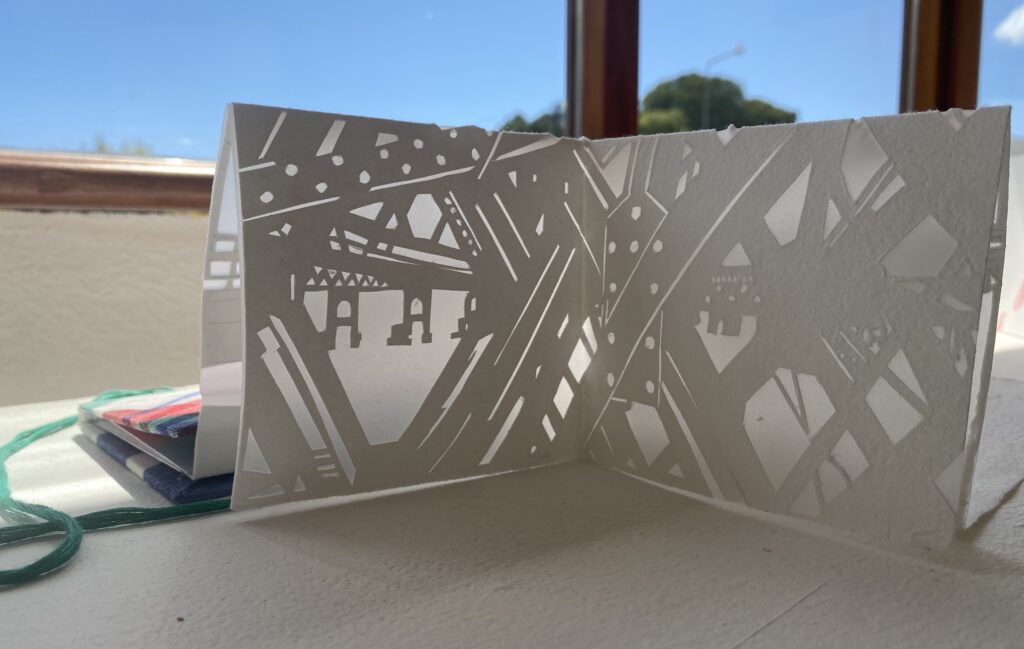 In an experimental series of limited edition books I am exploring how photography, textiles and paper cuts can formed into artist' books.