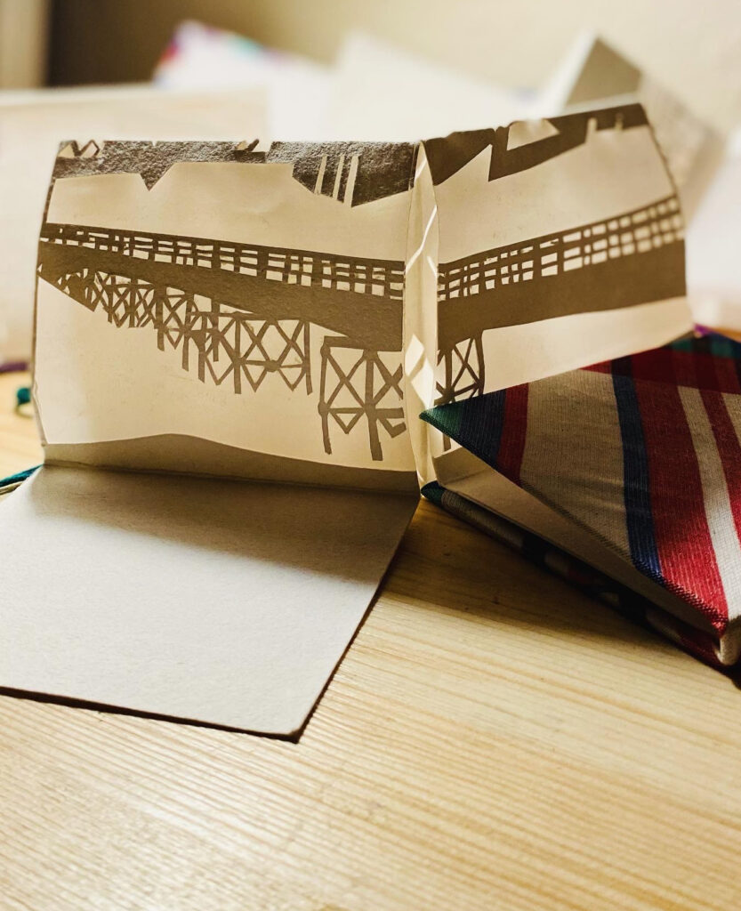 With a background in Constructed Textiles and specialising in weaving, I am interested in using some fine woven fabric I've made to create covers for these unique books. They are constructed of photographs forming accordion or concertina books and/or paper cuts unfolding to tell you a story.